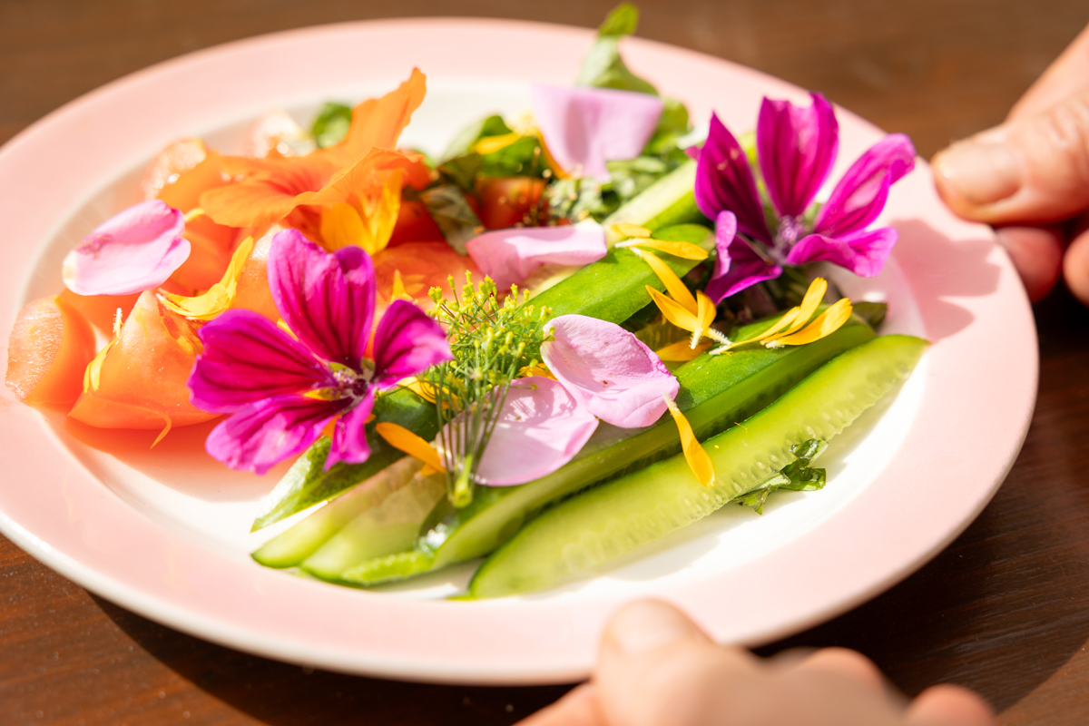 De lunch is niet alleen lekker en voedzaam, maar wordt net zoals de yogalessen worden gegeven, met aandacht bereid. Zoveel mogelijk met verse ingrediënten, uit het seizoen, uit de bongerd of voedselbos en aangevuld met producten van lokale ondernemers. Vers – lokaal – biologisch – vegetarisch. Duurzaamheid en respect klinken ook hier als kernwaarden door.